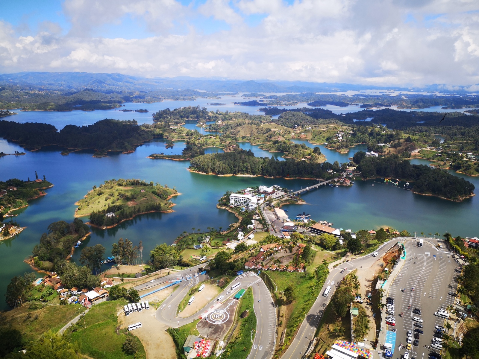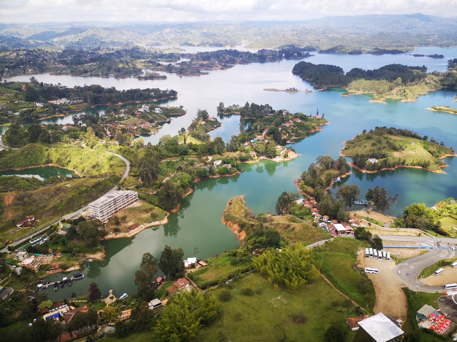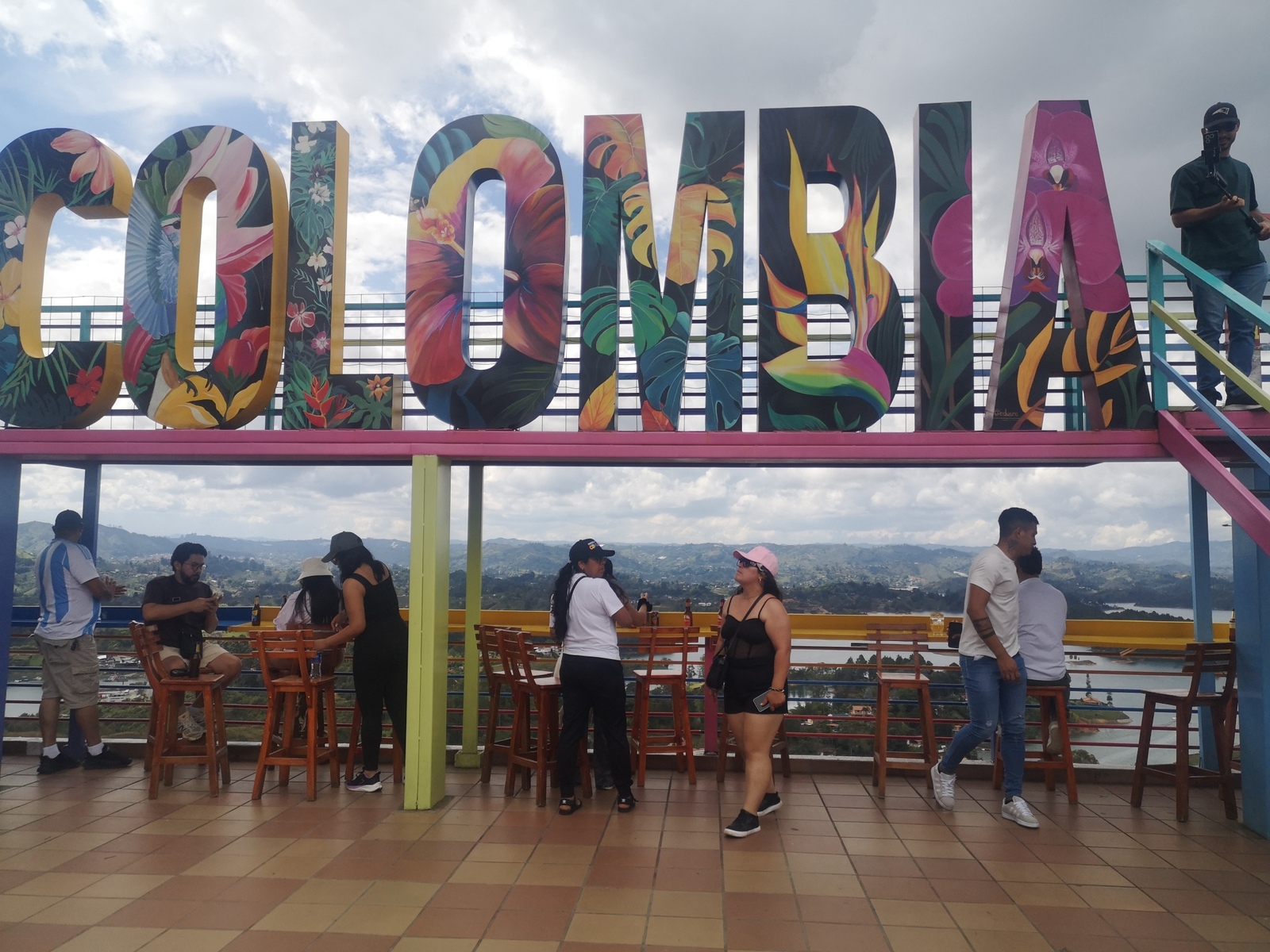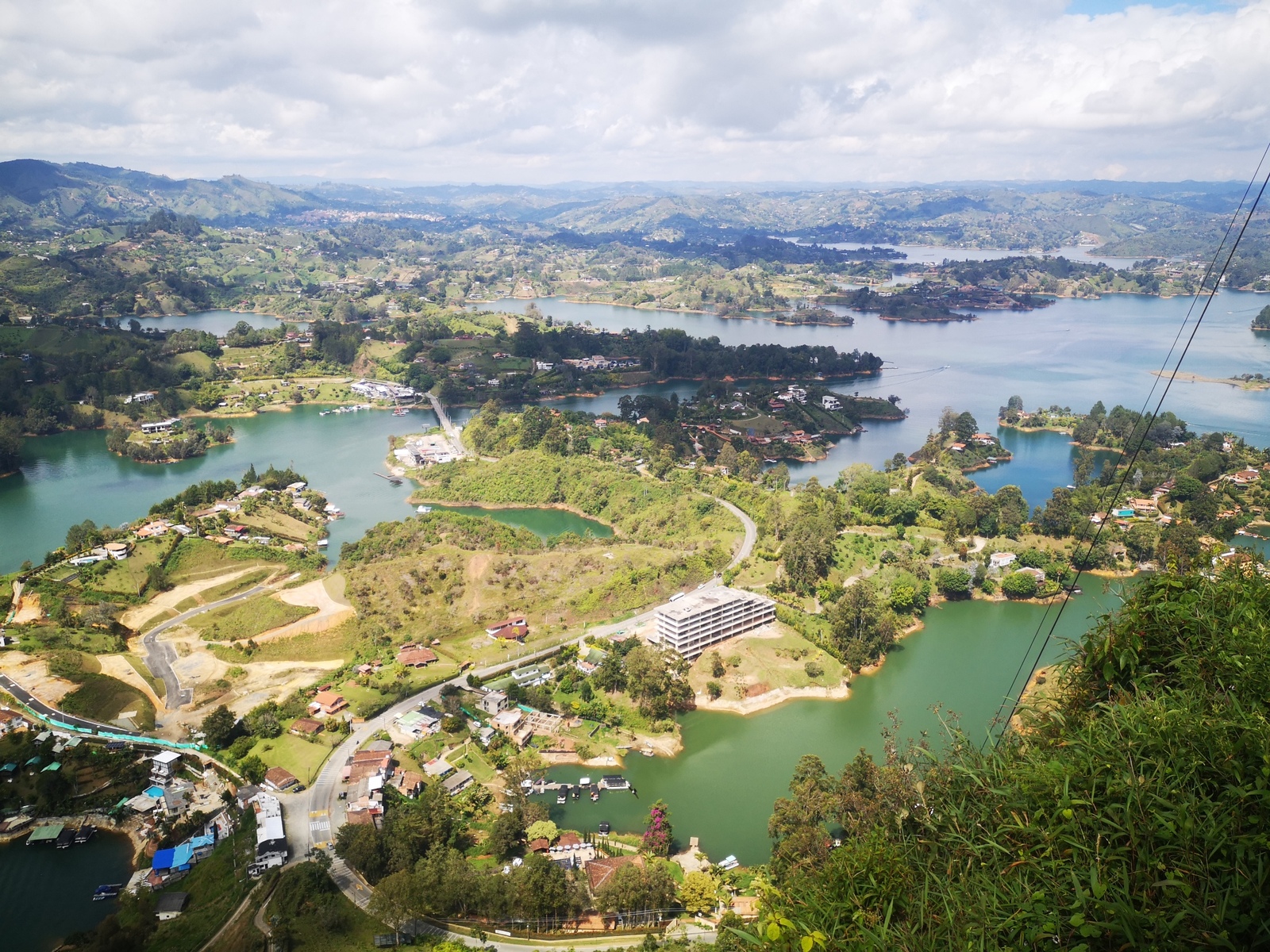 Puis ce fut la transition en vélo La Ceja – Guadape, nuveau lieu de séjour. Guadape est une ville très touristique, du à la construction d’un barrage hydroélectique à proximité qui a noyé la région et de ce fait Guadape est entourée de nombreuses iles ; de l’eau – 30 à 35 ° C, les bonnes conditions pour une station balnéaire. Les habitations très colorées de la ville la rendent encore plus attractives. Sa dent de granit du Peñol, avec 800 marches pour atteindre le sommet, reste un grand moment, avec une vus imprenable sur les evirons. Mais toujours un relief environnant à plus de 2000 mètres. Contrairement au Alpes qui présente un environnement très minéral avec les montées souvent en lacets, la partie visitée de la Cordillière se traduit par des collines boisées (culture du café) ou herbacées à perte de vue, donc jamais de sensation d’etre en haute montagne, sauf les poumons qui cherchaient de l’oxygène…