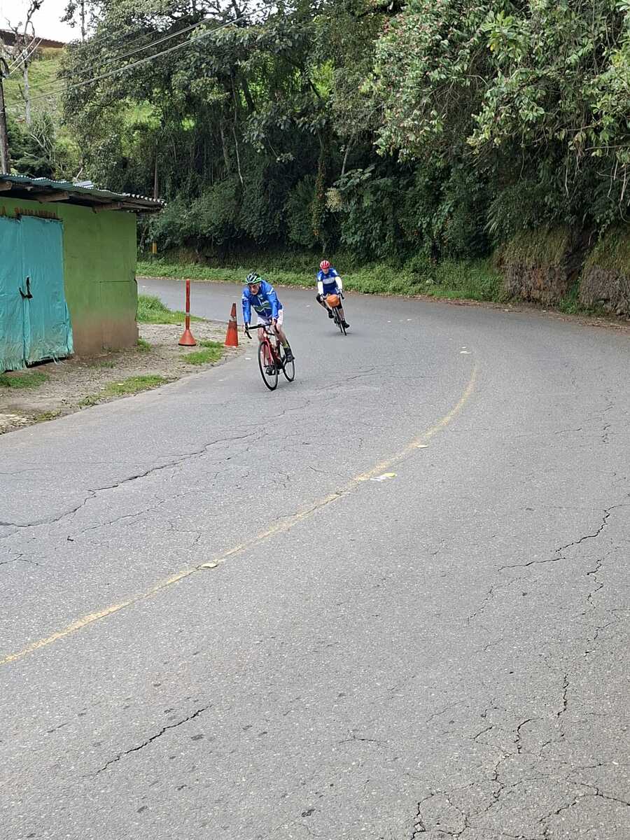 Pour finir en apothéose, le menu proposait la montée de Jerico, une montée mytique inscrite au programme du Tour de Colombie : 16 km avec 1500 m de dénivellée. Chacun à son rythme, mais avec le soleil et la fatigue accumulée, il y eut beaucoup de grincements de dents…., des chaines mais aussi des cyclos…