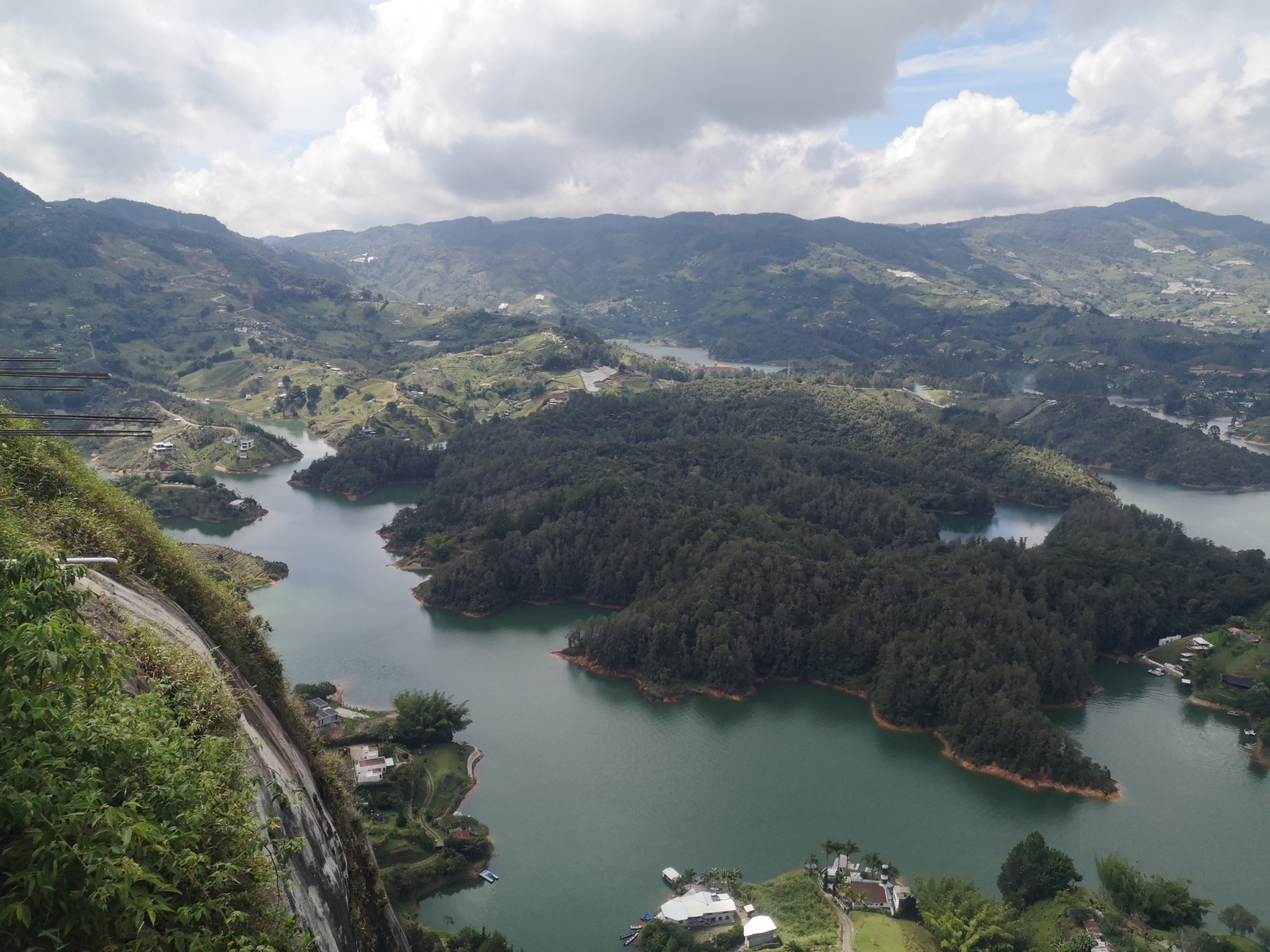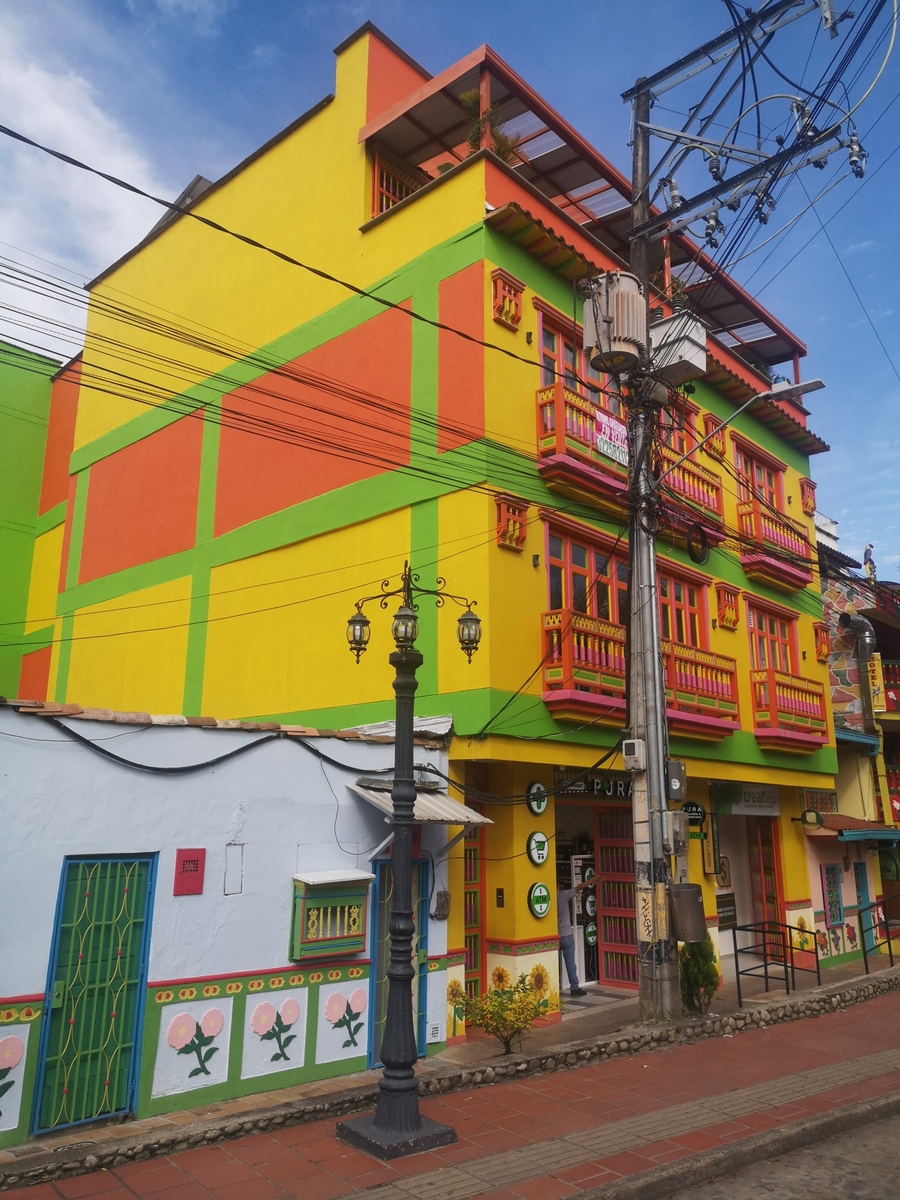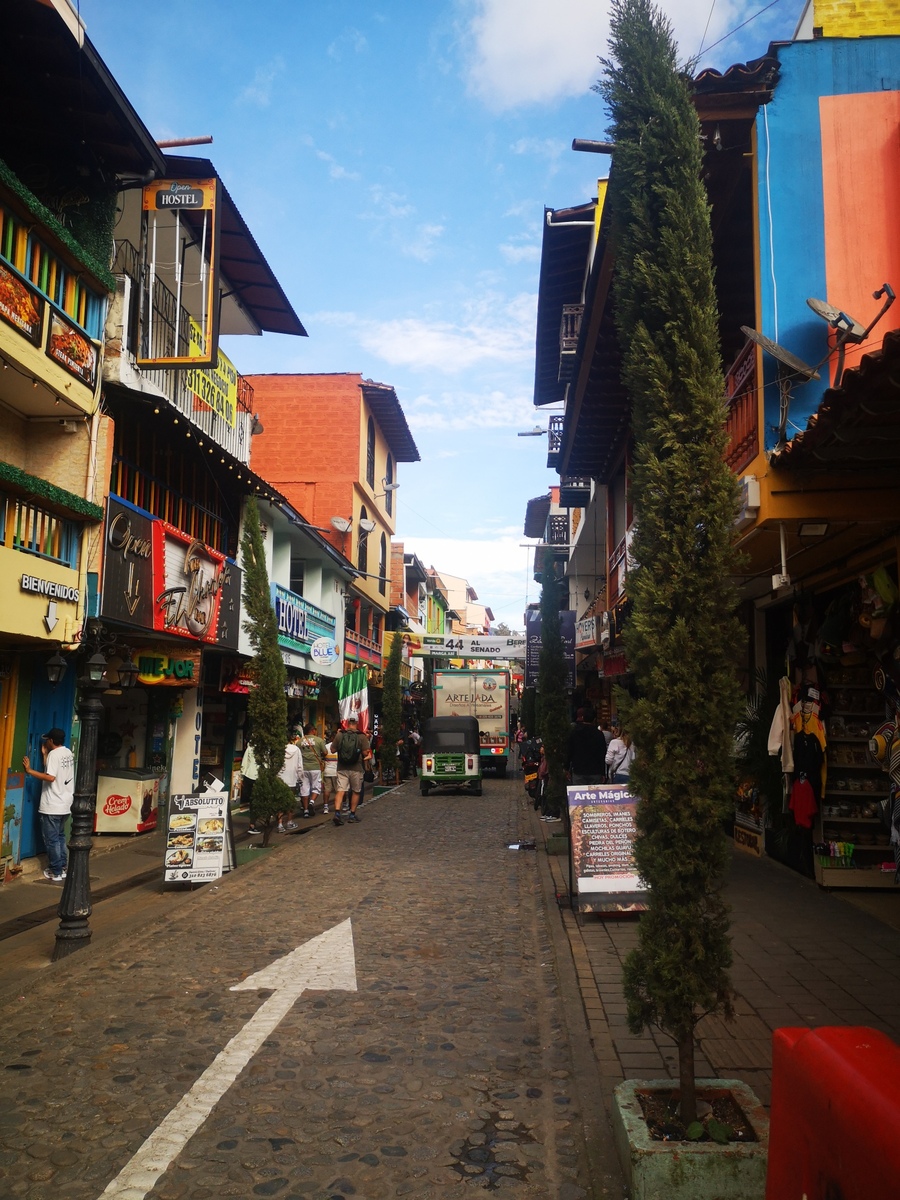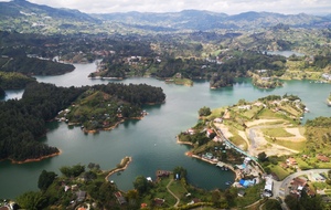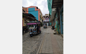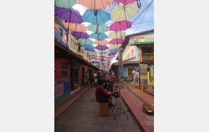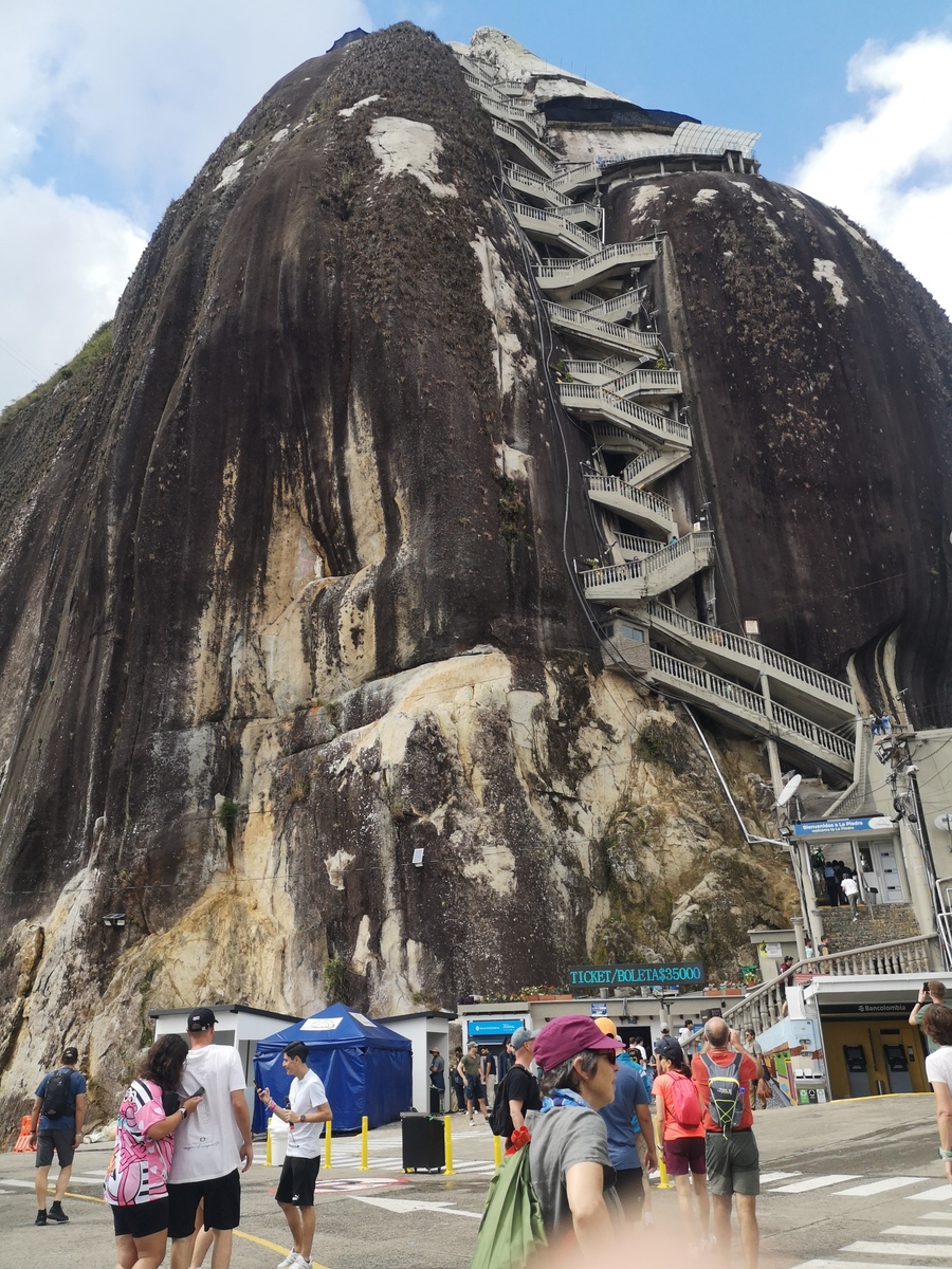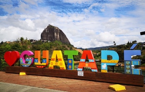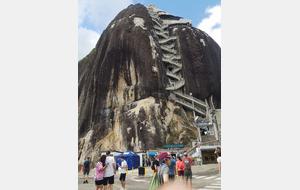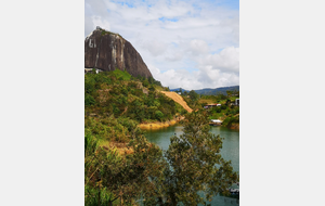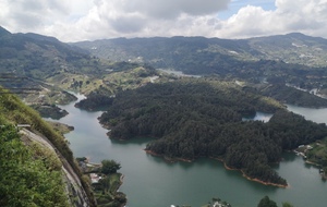 Puis ce fut la transition en vélo La Ceja – Guadape, nuveau lieu de séjour. Guadape est une ville très touristique, du à la construction d’un barrage hydroélectique à proximité qui a noyé la région et de ce fait Guadape est entourée de nombreuses iles ; de l’eau – 30 à 35 ° C, les bonnes conditions pour une station balnéaire. Les habitations très colorées de la ville la rendent encore plus attractives. Sa dent de granit du Peñol, avec 800 marches pour atteindre le sommet, reste un grand moment, avec une vus imprenable sur les evirons. Mais toujours un relief environnant à plus de 2000 mètres. Contrairement au Alpes qui présente un environnement très minéral avec les montées souvent en lacets, la partie visitée de la Cordillière se traduit par des collines boisées (culture du café) ou herbacées à perte de vue, donc jamais de sensation d’etre en haute montagne, sauf les poumons qui cherchaient de l’oxygène…
