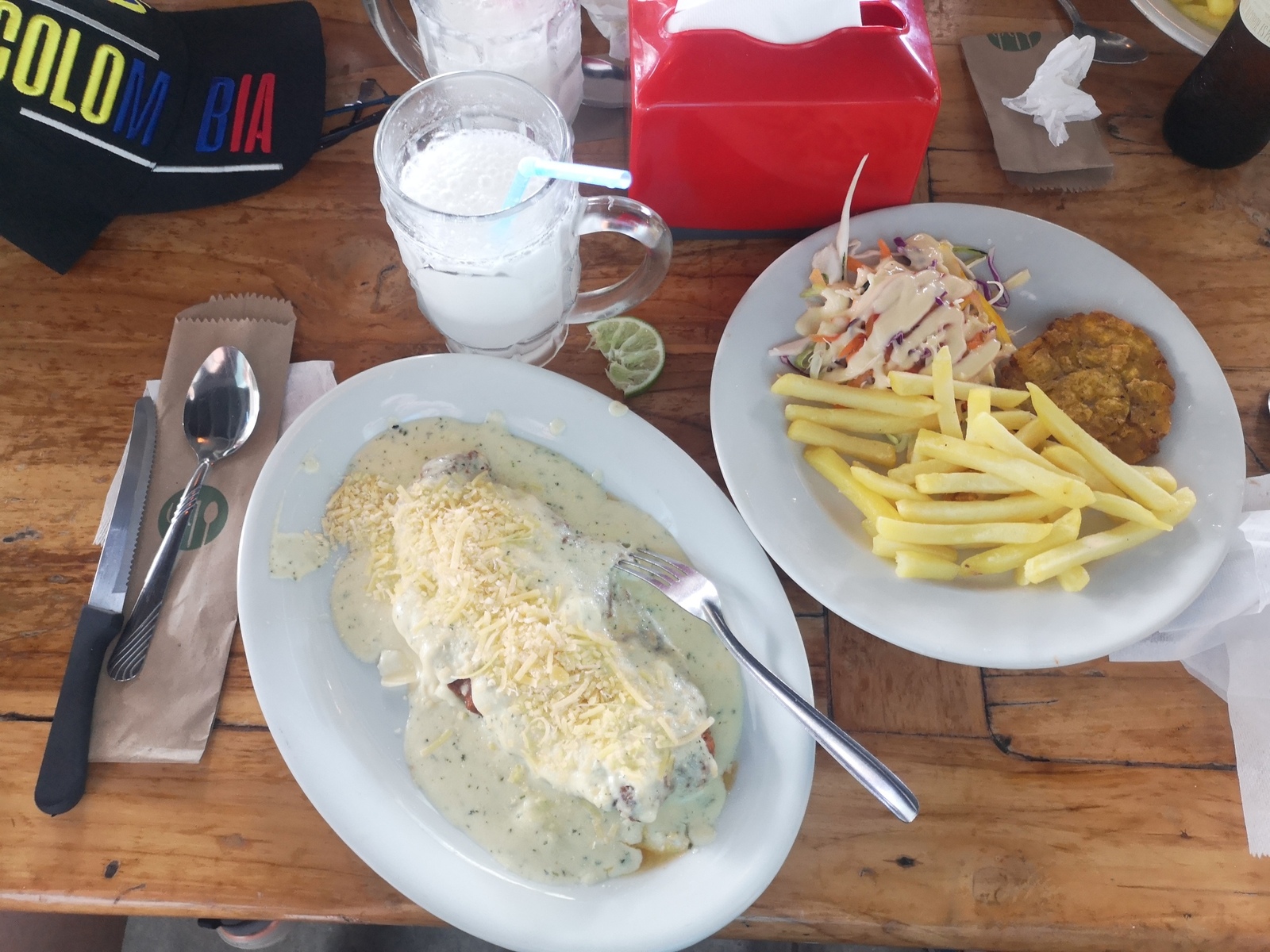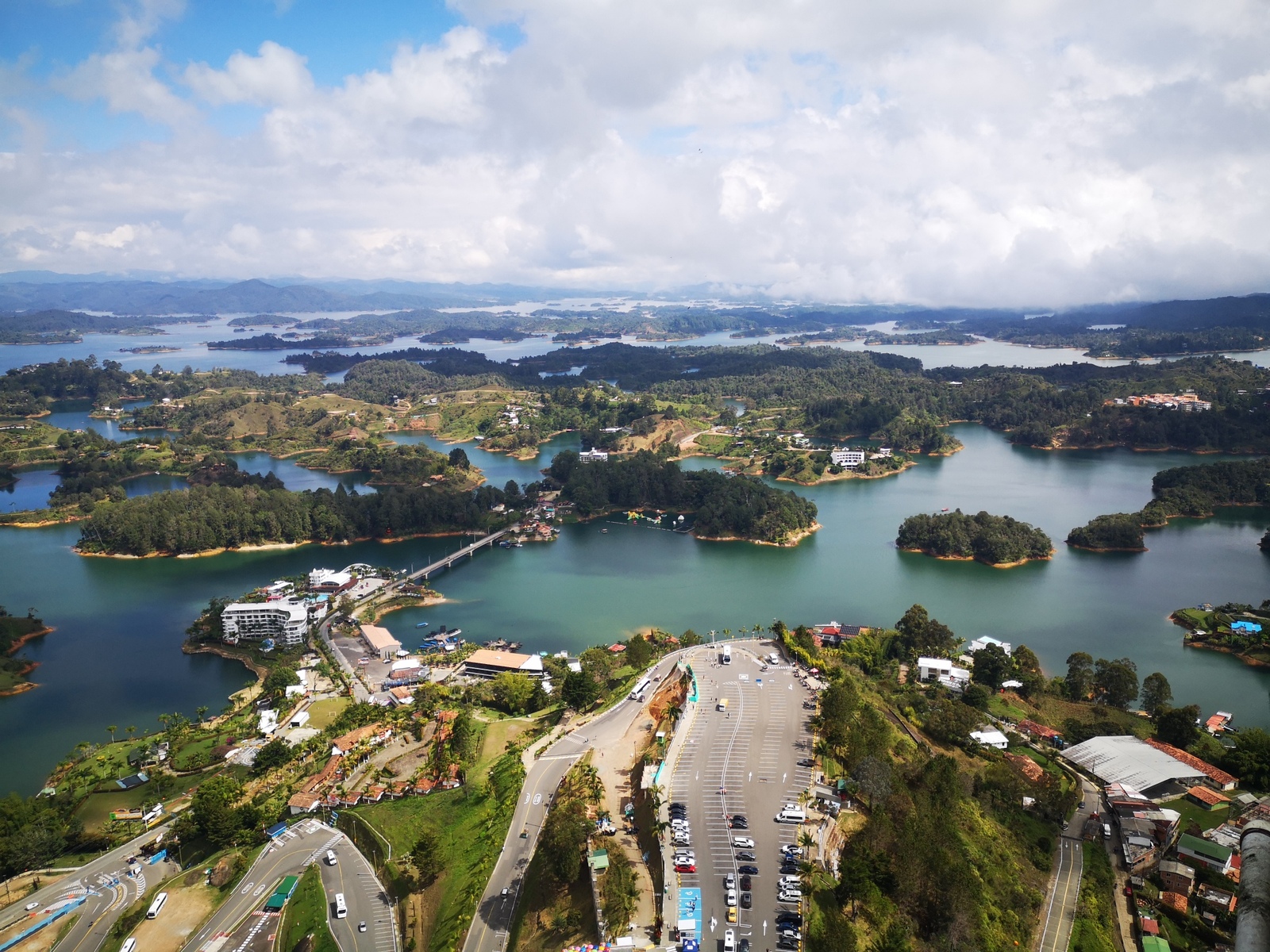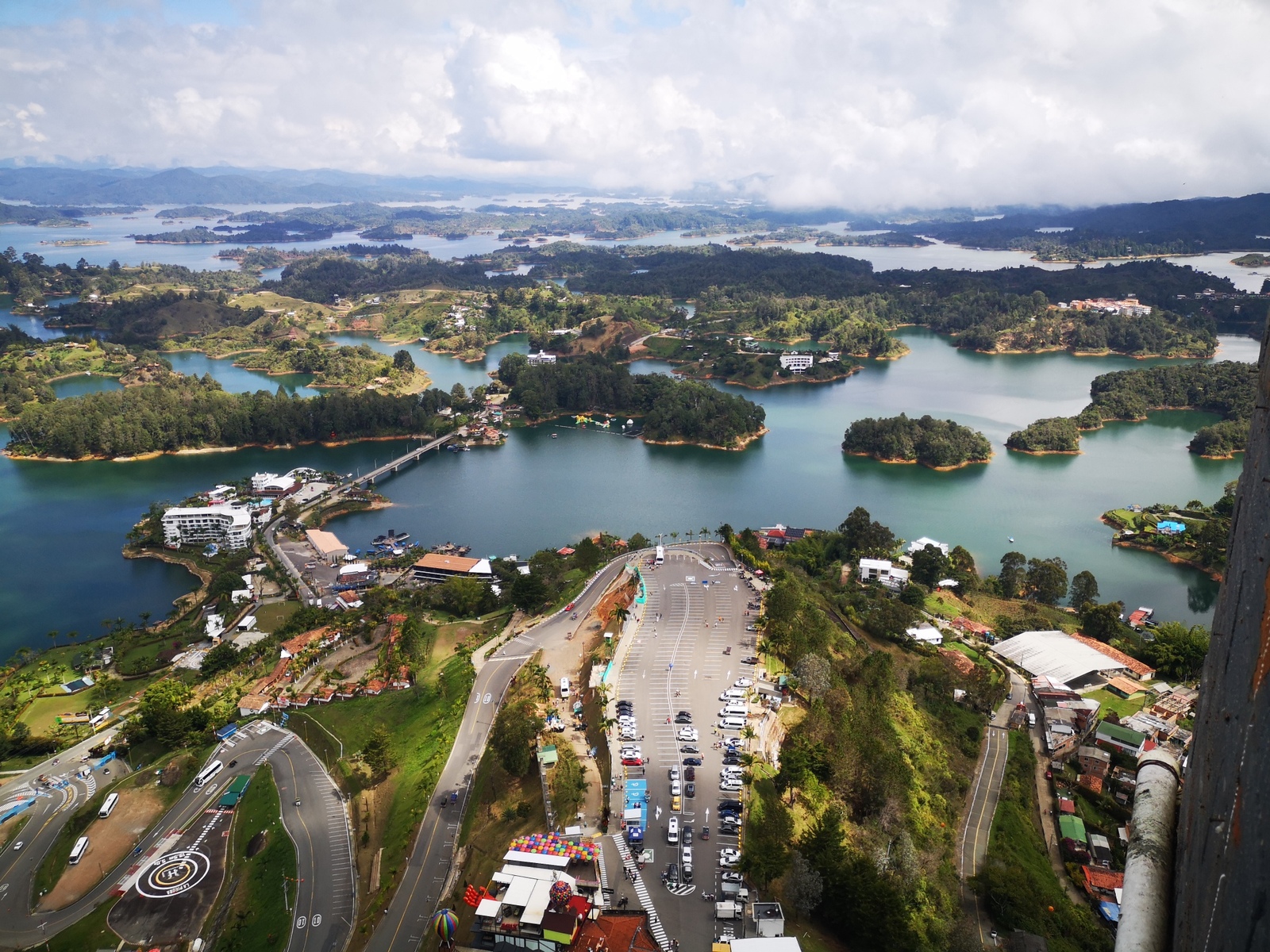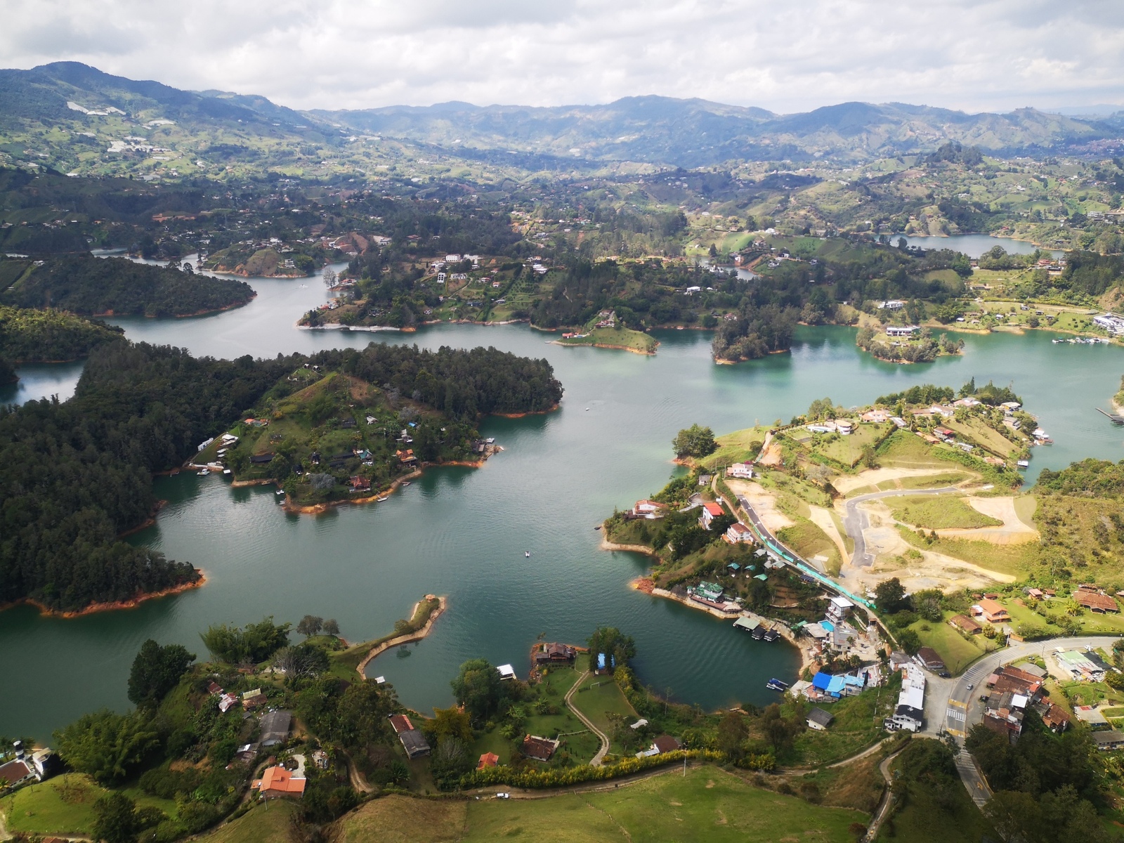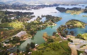 Puis ce fut la transition en vélo La Ceja – Guadape, nuveau lieu de séjour. Guadape est une ville très touristique, du à la construction d’un barrage hydroélectique à proximité qui a noyé la région et de ce fait Guadape est entourée de nombreuses iles ; de l’eau – 30 à 35 ° C, les bonnes conditions pour une station balnéaire. Les habitations très colorées de la ville la rendent encore plus attractives. Sa dent de granit du Peñol, avec 800 marches pour atteindre le sommet, reste un grand moment, avec une vus imprenable sur les evirons. Mais toujours un relief environnant à plus de 2000 mètres. Contrairement au Alpes qui présente un environnement très minéral avec les montées souvent en lacets, la partie visitée de la Cordillière se traduit par des collines boisées (culture du café) ou herbacées à perte de vue, donc jamais de sensation d’etre en haute montagne, sauf les poumons qui cherchaient de l’oxygène…